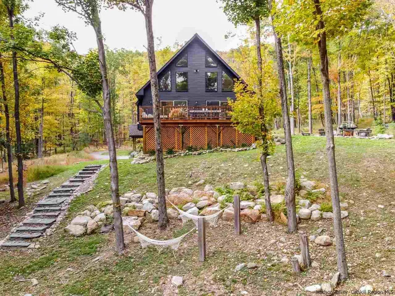 Welcome to The Modern Mountain House. This 3 Bedroom, 3.5 Bathroom tastefully updated chalet is set on 10 acres in Sullivan County. The home offers an abundance of lux details with a sleek yet comfortable aesthetic. Constructed in 2016 this solidly built 2,160 square foot abode offers; owned solar panels, radiant heat, ductless split units, nest thermostats, and a simplisafe security system. Flooded with natural light the oversized windows bring the outdoors in. Relax on the 360 square foot deck with two sets of sliders. An open floor plan style living room that boasts cathedral ceilings, white oak flooring throughout, and a newly installed Montigo gas fireplace. The kitchen is a chef's delight, with an eye for design the current homeowners added a fluted kitchen island with a quartz countertop, new cabinet doors and hardware, and imported slate countertops with a Cle tile backsplash and finished with smart home appliances and Bertazzoni range. The lavish primary bedroom is a sanctuary which includes a spa-like, ensuite bath. A custom concrete vanity, sinks, shower bench and nooks. Handmade Zia tiles line the floors and walls, radiant heat and new fixtures. Upstairs there is an airy landing loft, two additional bedrooms and a full bathroom. The finished lower level offers an additional 500 square feet of space with mother-in-law style set up. This can serve multiple purposes, space for guests, a playroom, work from home, or an exercise studio. New exterior paint and outdoor lighting set the tone for the beauty inside. Explore your green thumb with a raised bed vegetable garden or relax by the fire pit. The outdoor staircase leads you to the hammocks and your own 10 acre wooded paradise. Dont miss the opportunity to enjoy this home for years to come.