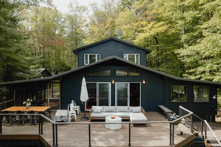 Presenting 60 Wildwood Way, this private home is nestled amidst five acres of land, including one acre of prime lakefront property. This magnificent home boasts a secluded setting on the tranquil shores of McAuleys Lake. With direct access to McAuleys Lake, immerse yourself in the joys of lakeside living without being in a flood zone. Whether it's early morning kayaking, mid-day picnics, or late-night stargazing by the water, this property is an ode to nature lovers. The residence itself offers a sprawling four bedrooms and newly renovated three bathrooms. Each room is designed to capture stunning lake views, bask in natural light, and provide comfort. Architectural brilliance meets contemporary design in this unique home. High ceilings, tasteful finishes, and a seamless indoor-outdoor flow ensure that every corner of this home exudes clean lines while still having warmth. Updates to the property include: Freshly painted interior and exterior, New hardwood floors, An on-demand water heater, A finished basement, New appliances, Kitchen and bathroom renovation, New pergola and work to the deck, New metal roof, The modern, freshly updated kitchen has new appliances and ample counter space, with an inviting ambiance perfect for intimate dinners in the adjacent dining area. With five acres of land, find your sanctuary relaxing in the new pergola, outdoor shower, and expansive deck. The property also features a garage and a whole-house generator. The property promises privacy and tranquility while close to local amenities and attractions and is 20 minutes from the Port Jervis train station. Enjoy many of the local restaurants at White Lake, Wine taste at Bashakill Vineyard, and 20 minutes to ski at the Holiday Mountain Ski Resorts. Visit many of the emerging towns like Barryville and Eldred. Discover the joy of Lakefront living, expansive space, and fresh air at 60 Wildwood Way.
