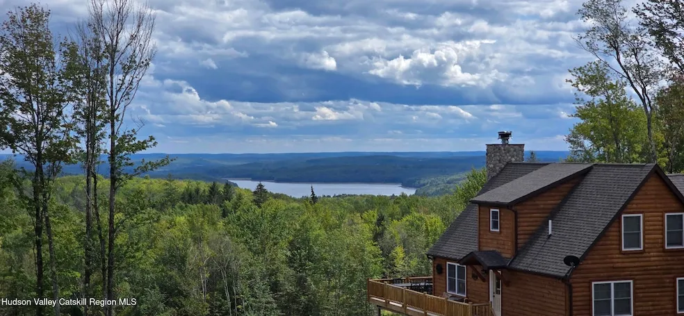 The Outdoors, near the top of Aden Hill Mountain at nearly 2,200 feet elevation, is what your well appointed luxury Western style Lodge is all about. Make this dramatic Home your own comfortable get-away with its high efficiency ''Energy Star Rating'' structure, HVAC, and appliances. The Lodge is faced with Tennessee Cedar log-style siding and has a log perimeter railing to wrap-around the Deck. This outdoor area is spacious enough for family gatherings and large group BBQ's looking out over the dramatic panorama across the Neversink Valley to the Neversink Reservoir and towards Thunder Hill and the Shawangunks. Enter your Home to be greated by a massive Fieldstone Fireplace and Cathedral Ceiling in the Great Room on the Main Floor. There are Knotty Pine ceilings and walls throughout most of this five-bedroom Hacienda Style home, accompanied by traditional Rustic Ranch Timber details. Th...