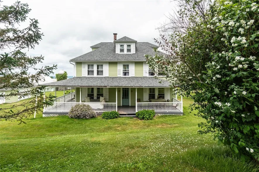 Have you been dreaming of your own farm or starting an agricultural business? Or do you just love puttering around in your garden, having a nice flock of backyard chickens and plenty of room for your dogs to roam? Windy Willow Farm was meticulously restored to be the perfect balance of original farmhouse charm & modern-day living, from the custom-designed cottage-style chicken coop & picket-fenced organic vegetable garden to the eat-in kitchen with french door pantry, free-standing Kohler porcelain sink & vintage Beauty Range stove. The extensive renovation includes period trim moldings, archways, and vintage-style radiator covers that were locally built for the home. An expansive mudroom was added for both farming & entertaining with heated floors, a double utility sink, and a row of western-facing windows. The 2nd-floor includes a large primary bedroom, laundry, and a huge sun-filled bathroom with a clawfoot tub and a separate shower. The third floor includes the fifth bedroom plus an additional 20 x 34 bonus space. The barn, which has electricity and seasonal plumbing, consists of a smaller cow barn, hay and milking rooms, three large stalls suitable for horses, goats, or pigs, a tractor area, and the original dairy section with stanchions. The separate front portion of the barn is ideal for many home-based businesses with its impactful Gothic arch style. There is a small barbed-wire fenced barnyard pasture and a 3-acre electric fence pasture. The beautifully maintained landscaping features a 2-acre fenced area around the home, including a massive garden shed, garage, a chicken coop with two large fenced and netted yards, a 40x16 vegetable garden, a 20x24 flower garden, a pond, a fire pit, and mature trees and hydrangeas. All this in Sullivan Catskills and the Delaware River with the breathtaking Beechwoods views & pink sunsets
