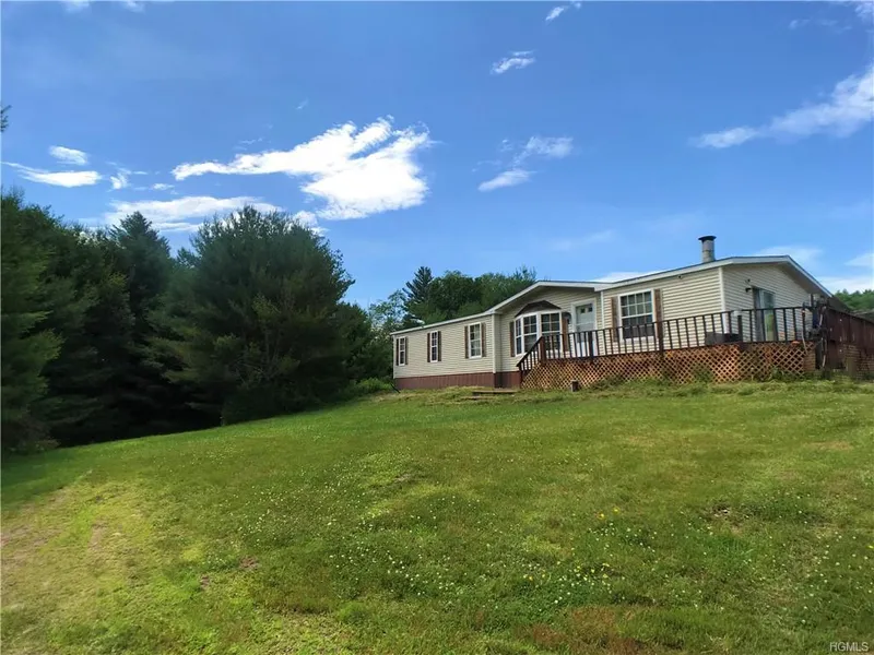 Wonderful property near to Bethel Woods (5 minutes!) and all that the Sullivan County Catskills has to offer! This double wide mobile home is set back from the road on a dead end, providing privacy yet easy access to everything. Situated on 58+/-acres of woodland with mountain view and lake access. The woodland is filled with all the beautiful and abundant wildlife of the Catskills, making this the perfect recreational homestead for the sportsman and nature lover alike. The home offers 3 bedrooms, 2 full baths, a really nice sized living room with vaulted ceilings, and a fireplace that helps cozy-up those chilly evenings in the mountains. The property is gently sloping and level with open fields and woods. There is lots of frontage along a gated private road offering many opportunities and a driveway cut in for an additional residence if desired. The perfect outdoor brick oven is great f...