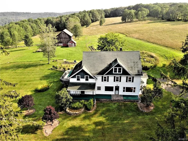 Pristine, private and preserved... a piece of history lives in this classic early 1860's farmhouse that married an addition in 1920 and has been tastefully remodeled and updated without compromising that "Down on the Farm" charm. Almost 50 acres of amazing property is a picturesque bucolic setting with open fields, woods, seasonal stream, natural landscaping, mature trees, blueberries, stone walls, and gorgeous mountain vistas. This sprawling country home offers 5+ BR's, including Master suite with skylights, 3 full BA's, gourmet chef's kitchen, second kitchen/studio, LR, family room, mudroom and "fun" finished attic. Wide plank floors, hand-hewn beams, built-ins, and quintessential country accents throughout. Very efficient updates include radiant heat and much more! Two story 1800's dairy barn with stone silo complements the house and has been preserved with new roof. Was used as a B&B prior, two meters, use your creativity. The search for the private rambling country escape is over!
