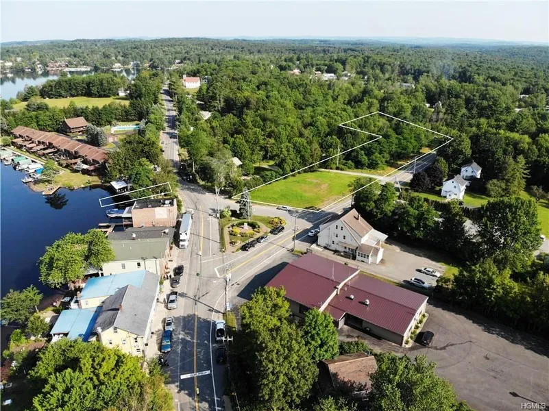 Once in a life-time opportunity to own a prime parcel in Kauneonga Lake, across from the restaurants with a piece on the lake! The 2.4 acres is plenty large enough to do something creative: shops, restaurants, or housing with plenty of parking! The parcels are cleared on the corner, wooded in back and "L" shaped. There is over 700 feet of frontage for amazing visibility and access. This could even be a terrific opportunity to build your dream home with privacy and walk to your dock on the most popular lake around! The strip on the lake is strategically placed with access to all the restaurants on Restaurant Row and is 50 feet wide, running into the water.