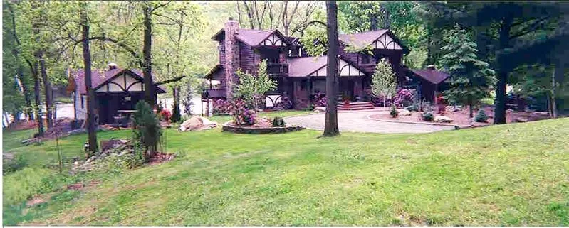 Very private 4 bedroom, 3 bath log & stone Mountain Tudor nestled on secluded wooded parcel with 2 ponds with spectacular frontage on The Wild & Scenic Delaware River. This top quality 4500 sq. ft. home was designed for entertaining with custom kitchen with granite countertops & luxury appliances, living room with huge stone fireplace, family/rec room with fireplace, wet bar, dance floor, spacious dining room with glass fascade, sunroom, den with fireplace, huge deck with gazebo bar all with breathtaking views of the river. More!