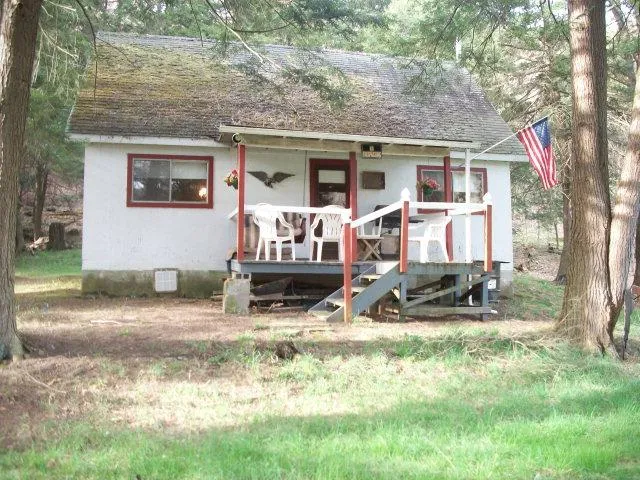 2 story hunting cabin with 1 large bedroom, 1 full bath, and open floor plan. With just over an acre, sit and watch the wildlife from the covered porch.