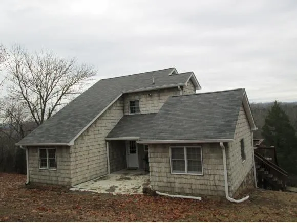 Spacious secluded home perched on 3.35 acres. Large great room w/stone fireplace. Hardwood floors on main level. 2 large bedrooms and full bath w/jetted tub on main level, Kitchen w/nice cabinetry and appliances. Large master suite on 2nd level. Den in basement. Large 2 car garage with work space/storage. 3.35 acres partially wooded and private. Lots of Wildlife and great views. Priced below tax appraisal.