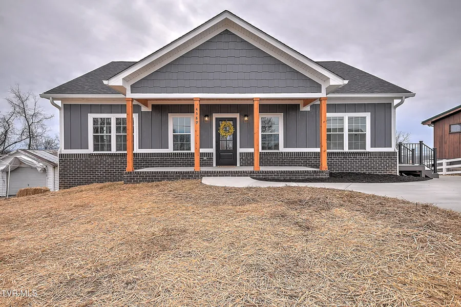 Stunning new construction just outside Kingsport City limits and now listed way below appraisal price! This one-level home spares no expenses with its hardwood floors, quartz countertops, custom tile in the primary shower, beautiful LP siding, stone backsplash in the kitchen, and an enormous custom kitchen island. The primary suite and guest bedrooms are separated by the airy living room, accented by a stone fireplace featuring gas logs (the water heater runs on gas as well). Off the kitchen you'll find a spacious pantry as well as access to the composite back deck, from which you'll have winter mountain views. The concrete driveway provides ample parking, and a side entrance takes you through a mudroom area with cubbies and a bench already installed for your perfect drop zone. If you're concerned about storage, the walk-in crawl space is encapsulated and provides extra room to keep your things safe and dry. Don't miss your chance to check it out! Home comes with a one-year builder's home warranty. All information herein deemed to be reliable but not guaranteed. Buyer/buyer's agent to verify all information.