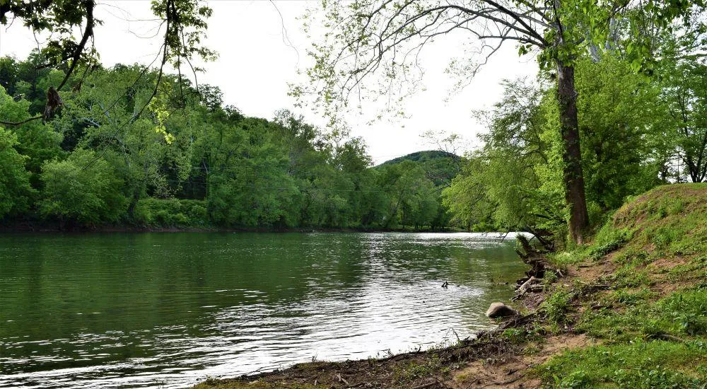 The Grahams Ferry earthen grade is still visible on the East side of the Greenbrier River and is used to this very day as the River Access for the Fishtales Cabin at the mouth of Kellers Creek as shown in the photo gallery. A perfect spot to walk down to the river along the same ground that early pioneers passed over. Easy take in and out for Kayaks, Canoes and little swimmers. A natural shoal in the river created a deeper area in the water here for the Ferry. The shoal nowadays is a gentle rippling slide on the river. This shallow area near the shoal and the ferry grade has often been a favorite place for river baptisms.