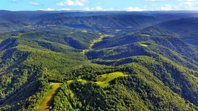 This stunning 392 acre multi-use property is a mix of rolling a meadows and mature temperate hardwood forest. On a bright blue mountain morning, Peters Mountain in Virginia can be seen nearly 40 miles away.