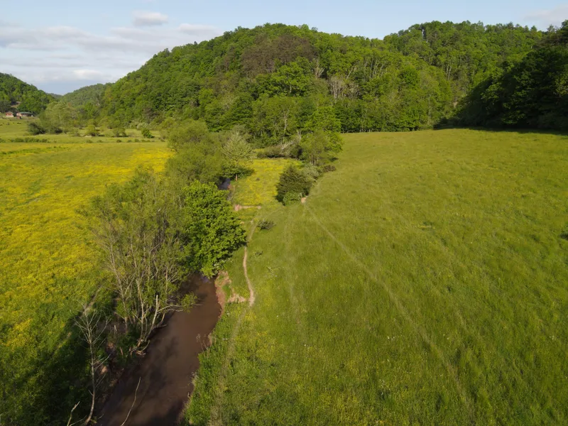 Pristine 5 acres of prime pasture fronting 1000 ft on Little Wolf Creek - a year -round creek. Property has excellent topography for building and RV sites. Property is buffered by forest, is gated, and fenced on 3 sides, with middle of creek as 4th boundary. View shed is Little Wolf Creek Valley farmland. Ground is rich and fertile. Excellent area for mini-farm or grazing. This property has never been offered as a solo tract. Owner is willing to sell additional forested acreage $5,000/acre. No Restrictions. Private driveway from county road. Larger 188 acre tract available which could include Tract C MLS 23-539 or MLS 23-503, 404 acres.