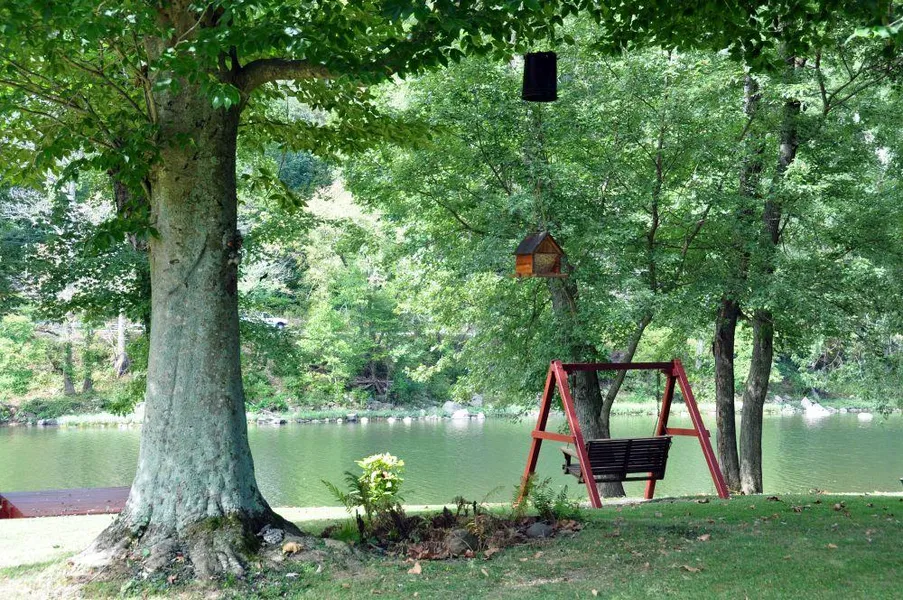 The fantastic large three-sided deck gives plenty of room to entertain guests or spend time with the grandkids. A ceiling fan on the porch provides comfort to enjoy both the mornings and evenings on the Greenbrier River. The rivers edge is gently sloped for easy launch and return to the shore.