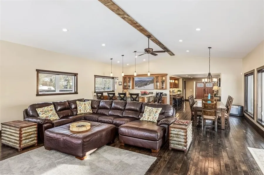Nestled in the heart of Silverthorne, this stunning turn-key single-family home offers convenience and mountain charm. Situated on a half-acre lot, the property boasts breathtaking views of Buffalo Mountain and Red Peak of the Gore Range to the west, and Peaks 1 and 2 of the Ten Mile Range to the southwest—perfect for nature lovers and adventure enthusiasts. With 7 bedrooms and 6.5 bathrooms, this home provides ample space for family, guests, or rental opportunities. The spacious great room features vaulted ceilings, a gas fireplace, and a wall of glass that frames the panoramic mountain views. Step outside to enjoy the outdoor fire pit, ideal for cozy evenings watching sunsets. Entertain with ease at the large bar in the great room or in the gourmet kitchen, complete with a professional-grade refrigerator, 48” 6-burner Viking gas range, granite countertops, and plenty of prep space. The...