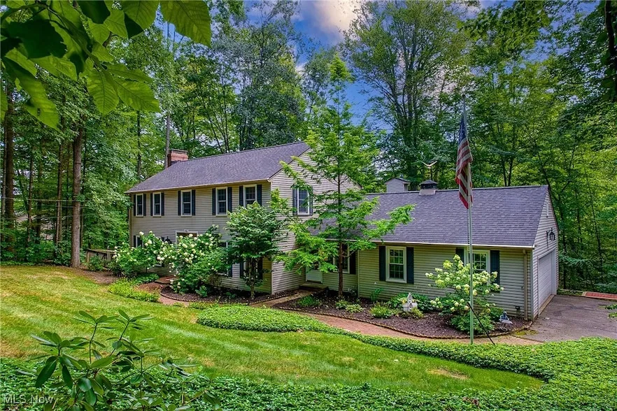 Welcome to this stunning Colonial in the desirable Yellow Creek Woods of Bath Township, perfectly nestled in the woods on a quiet cul-de-sac. This beautifully updated home offers a warm blend of charm, modern upgrades, and breathtaking nature views. Step into the open foyer where you ll find a formal living room to the left, complete with built-in bookcases, cozy fireplace, and double doors leading to the back deck. To the right, the dining room is a design lover s dream with vibrant wallpaper and a statement light fixture. The back of the home showcases an expansive open-concept great room featuring a brand-new remodeled kitchen (2025) with stainless steel appliances, side-by-side refrigerator, induction range, built-in microwave, and an oversized island seating nine. The kitchen flows seamlessly into the family room with a beamed vaulted ceiling, fireplace, and two sets of double doors...