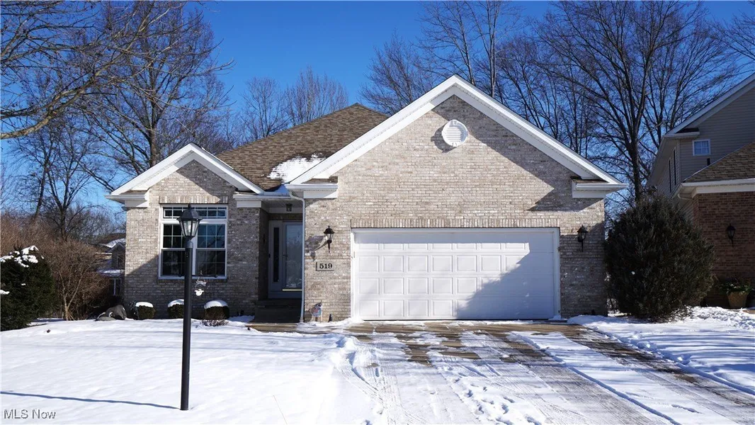 Looking for the convenience of a condo in a freestanding cluster home? Look no further than 519 Cheswyck Court in the Laurel Woods community in Copley Township. This 3-bedroom ranch with brick veneer facade is set on a private cul de sac lot with panoramic views of the community pond and wooded common area and is nearby both interstates and plethora of shopping and dining options. Walk-out basement is plumbed for 3rd full bathroom, providing options for finishing lower level. As you enter home, notice lovely hardwood floors throughout. Large Eat-in Kitchen is accessed easily from both entrances. Breakfast area is separated from the kitchen by a peninsula providing functional granite counter space. Equipped with all appliances and abundance of storage including a pantry cabinet with roll-out shelving, the kitchen is ready for your personal touches. Adjacent to the Eat-in Kitchen, a formal Dining Area and Great Room share a massive open space with matching hardwood floors. Gas fireplace with wooden mantle and tile hearth provides a cozy setting while crown molding elevates the finishes. Finally, a sunroom provides sliding door access to elevated composite deck with incredible view of a natural setting. Home consists of 3 bedrooms with primary suite sporting a 15 x 15 carpeted bedroom with both walk-in and shoe closets, en-suite bathroom with dual vanity, updated Solid Surface low threshold shower from Re-Bath and useful Laundry Closet. Additional bedrooms are carpeted and 3rd bedroom is furnished with a gas fireplace making it an extremely flexible space. Second full bath with single vanity, shower tub combo and ceramic tile floor serves as guest bathroom. Making our way to the basement, you'll notice both coat and utility closets providing plenty of storage. Extra wide steps make getting things in and out of basement a snap. 2-car attached garage is a bonus. With updates to these major items, Roof - '20, Furnace and A/C - '19, and HWT - '16, you can move right it!