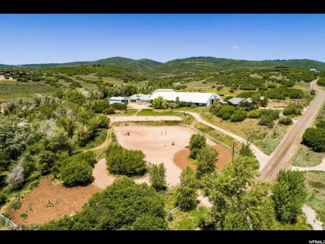 This legacy equestrian estate is unprecedented in its scale, amenity, facility, and offering. Engulfed in Silver Creek's natural enclave and adjacent to Goshawk and Glenwild, the place setting for this equestrian holding is world-class. The 10+ acres aggrandizes its space housing an Indoor Riding Arena, custom home, 19 stall barn, 2 outdoor arenas, guest cabin, caretakers apartment and horse orientated outbuildings. The 18,000 SF indoor arena includes 20FT automatic overhead doors that allow for climate flexibility in the Summit County weather and radiant directional heaters comfortably accommodate winter riding and training. Included in the barn is a heated viewing lounge, kitchen, caretaker apartment , and office. The property has a rare commercial conditional use permit, ,extra water shares and is licensed for 38 horses. The options and trajectories of the opportunity are boundless. Attached to the arena and barn is a heated tacking and grooming area accommodating 5 horses and 34 extra-large handcrafted tack lockers . That, combined with a full "horse" laundry, heated grain room and separate farrier/vet work room, provides an exclusive, year round luxury, private, or commercial, horse riding, training, breeding and boarding facility. The luxury horse stalls provide horses with automatic waterers, rubber mats, and automatic fly system. Pitched on top of the north side of the property sits the 4,400 SF, 4 bedroom custom home with views sprawling across all of the Park City ski resorts and valley. The home was designed to maximize the views with space opening vaults and ceiling heights. The two outdoor arenas are programmed on the site to allow for lessons, viewing, and direct access to mountain trails. The facility also provides fenced turnouts, a 2,000 SF bay shop large enough for RV's, horse trailers, and tractors. Also included is a private 2-bedroom 1,300 SF equestrian themed guest cabin nestled in the trees along the creek. All elements of this legacy estate are surrounded by aspen, a Koi pond, miles of trails, and staggering views.