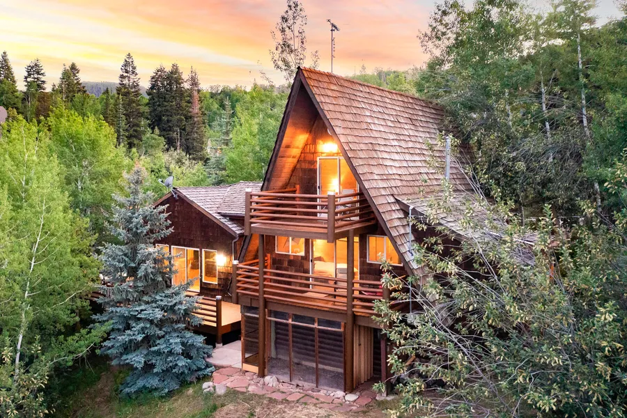Located in the Hidden Cove subdivision of Jeremy Ranch, this charming A frame will absolutely delight you. Situated on almost 3/4 of an acre, the private, wooded setting will make you feel like you are camping in the forest instead of living just 5 minutes from every convenience. Enjoy panoramic views from one of the three decks. The home has a main level master bedroom plus two additional bedrooms on the second level. Two of the bedrooms have their own decks and each has plenty of windows to take advantage of the views and light. The updated, open kitchen with stainless appliances, opens to a sitting and dining room. Down the stairs is the big surprise. A large family room with windows facing every direction and a pellet stove. If you are creative, perhaps you will enjoy the workshop, greenhouse or additional finished room adjacent to the garage, which has been used as both an office and a workout room (it has both heat and AC). Living in this home, you cant help but feel a strong connection to nature. Moose have been known to hang out on the front lawn. Plenty of storage and a detached oversized two car garage. An absolute treasure!