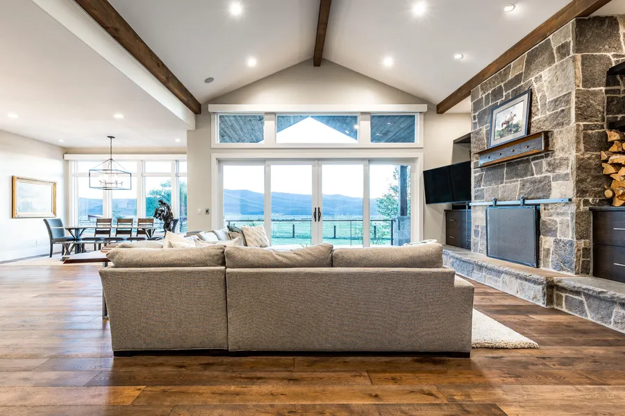 Every modern convenience was carefully planned in this nearly new custom home set on 2 acres bordered by agricultural land on 3 sides. Designed to capture the forever views with walls of doors and windows from the open kitchen/great room and master suite. The kitchen is an entertainers dream with GE Monogram appliance suite, two ovens, appliance garage, ice maker, and plenty of counter space & storage. An incredible highlight is the enormous walk-in pantry with a secret door that backs to the garage for easy unloading of groceries. The main level features hardwood floors, great room with wood burning stone fireplace, kitchen, dining, master suite, office, half bath, laundry/craft room, & mudroom. Easy access to the oversized 1425 SF heated garage. Upstairs are 3 en-suite bedrooms and a family room. Adjacent to the home is a 100 year old milk barn converted to a 1500 SF barn/shop thats la...