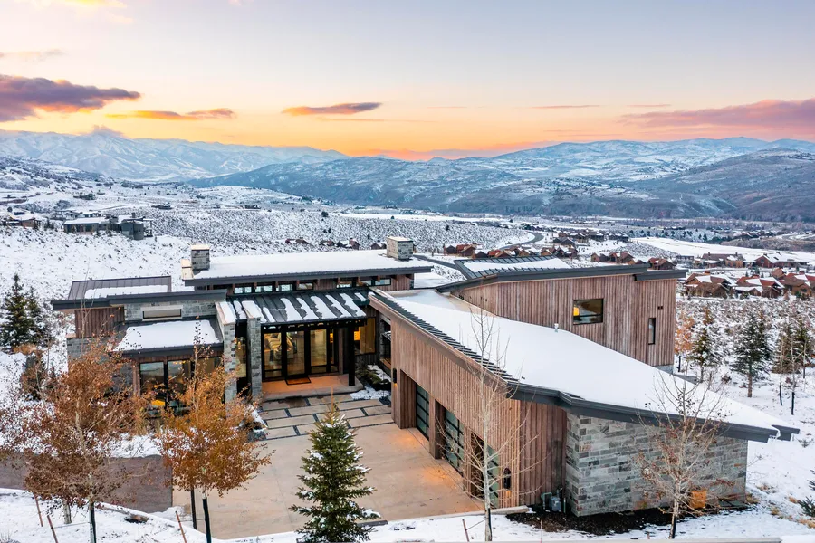 Features of the home include a glass, temperature-controlled wine room, 15-person custom spa-pool, 6 ensuite bedrooms including a bunk room, a grand piano den with floor to ceiling lighting, Savant Pro smart home system, Deer Valley Ski Resort views from all living areas and bedrooms, gourmet kitchen with Miele Coffee maker, steam oven, Wolf/Subzero appliances, 2 dishwashers, steam oven, and Ipe Brazilian hardwood decking.