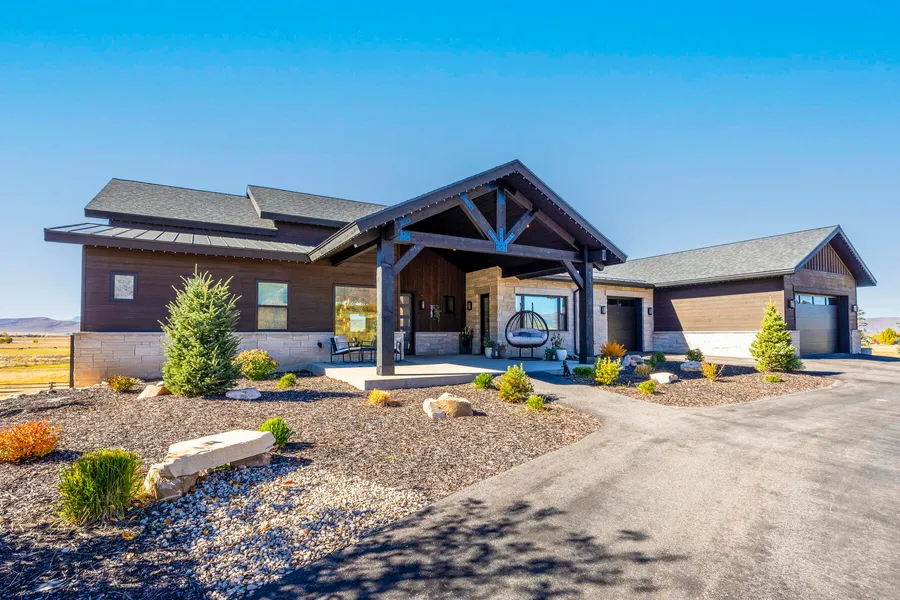 This home has it all, situated on over an acre, this property borders an agricultural easement preserving your forever views of the Wasatch mountains, ski areas and Mount Timpanogos. Thoughtfully designed, the functional floor plan promotes indoor/outdoor living with its expansive, covered deck with dual sliding doors accessed via the living area as well as the main level primary bedroom. The gourmet kitchen is perfect for entertaining, and offers a Thermador induction cooktop, double ovens, drink station with on demand hot, cold, and sparkling water, dual farmhouse sinks, walk in pantry, under cabinet lighting, and island breakfast bar with gorgeous finishes. The lower level is an incredible media room with two 65'' tv's, 126'' automated screen projector, game area, wet bar accented with floating shelves, refrigerator, dishwasher, gym, and exceptional outdoor space that includes linear, stone fire pit, and salt water hot tub. Additional features include Sonos surround sound system, Hunter Douglas automated blinds, Lutron lighting, and electric radiant heated floors in bathrooms. Store your toys in the oversized, 5-car, heated garage with disco ball, built-in cabinetry, access to custom mud room and RV parking in gravel driveway with power, water, and sewer hookups. High Star Ranch offers over 1,200 acres of year-round recreation with direct access to the Uinta National Forest. There are over 30 miles of trails for mountain biking, hiking, cross country skiing and equestrian use, with 16 miles dedicated exclusively to mountain biking. As an owner, you can enjoy the new Community pool, clubhouse with pickleball courts, bocce ball, and horseshoe areas. Rhodes Valley Outfitters offers trophy hunting & fishing and equestrian activities with an onsite boarding facility, while The DeJoria Center and State Road Tavern & Restaurant offer fine food and spectacular entertainment. High Star Ranch is only 15 minutes from world-class skiing/snowboarding and entertainment in Park City, Utah.