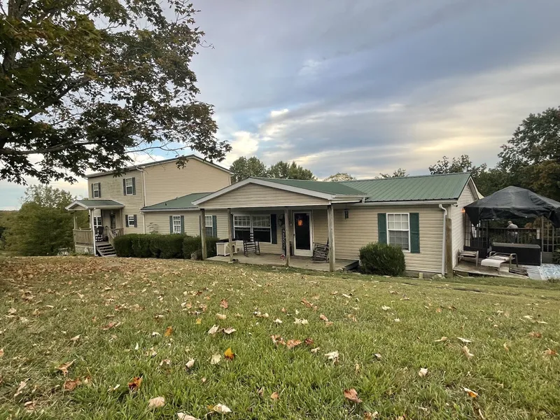 Road Frontage! Wonderful rural location with a variety of topographies for living, farming, hiking, and hunting... offering great privacy! This home combines a 2000 model double-wide with stick-built additions, including a bonus room and additional storage room, as well as a stick-built in-law addition. It features up to 6 bedrooms, flexible spaces, and baths. All the woodwork in the home is custom and holds historical significance. The family previously operated a business involving the dismantling of old cabins and barns, and some of the exquisite woodwork from those structures has been preserved in this home and used for mantels on the three fireplaces, transoms, door casings, and barnwood doors. This is a highly customized home! Additionally, there's a garage with a workspace (720 sq ft), a barn with stalls and a full hay loft equipped with electricity. There's also a roofed and sta...
