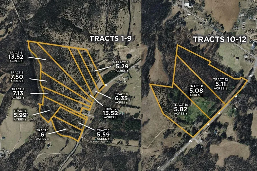 The largest of the creekfront tracts, Tract 6 boasts 13.52 acres with direct frontage on Sulphur Fork Creek. Its size allows for endless possibilities, from a spacious homesite to a small farm or recreational property. The creek adds character and charm, making the property ideal for fishing, exploring, or simply enjoying the peaceful sound of running water.