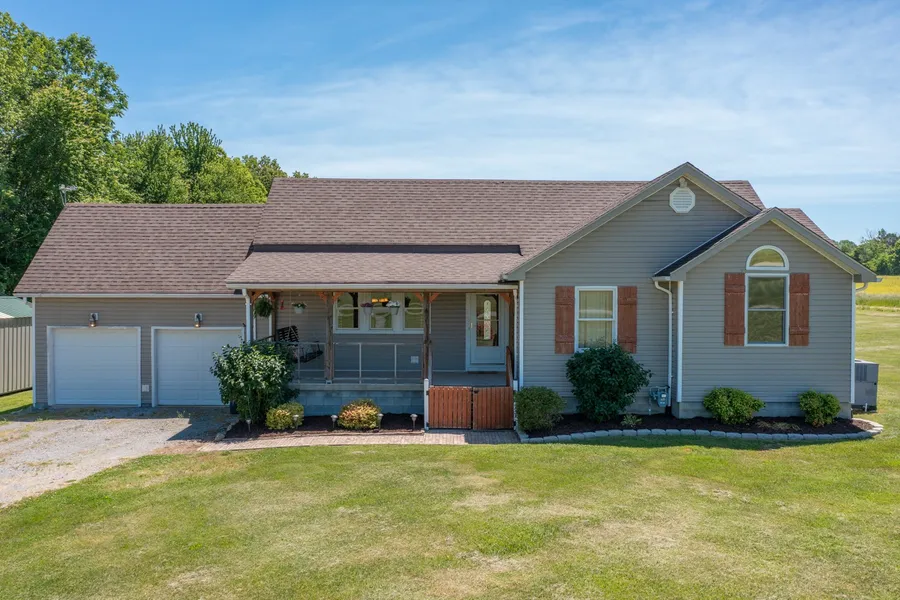 Charming farm style home on almost 4 acres! Hardwood floors, Updated kitchen, Open living area with high ceilings, Spacious master w/ separate tub and tile shower, Rocking chair front porch, Two car garage with storage, Huge multi level deck, Separate shed with built in workshop, Chicken coop and rabbit hutch. -the best of quiet country living. Only 40 min from Nashville but feels worlds away. No Carpet or HOA! Come see if it feels like home to you. Be sure to see the attached walkthrough and aerial video! UNDER CONTRACT - still showing for back up offers