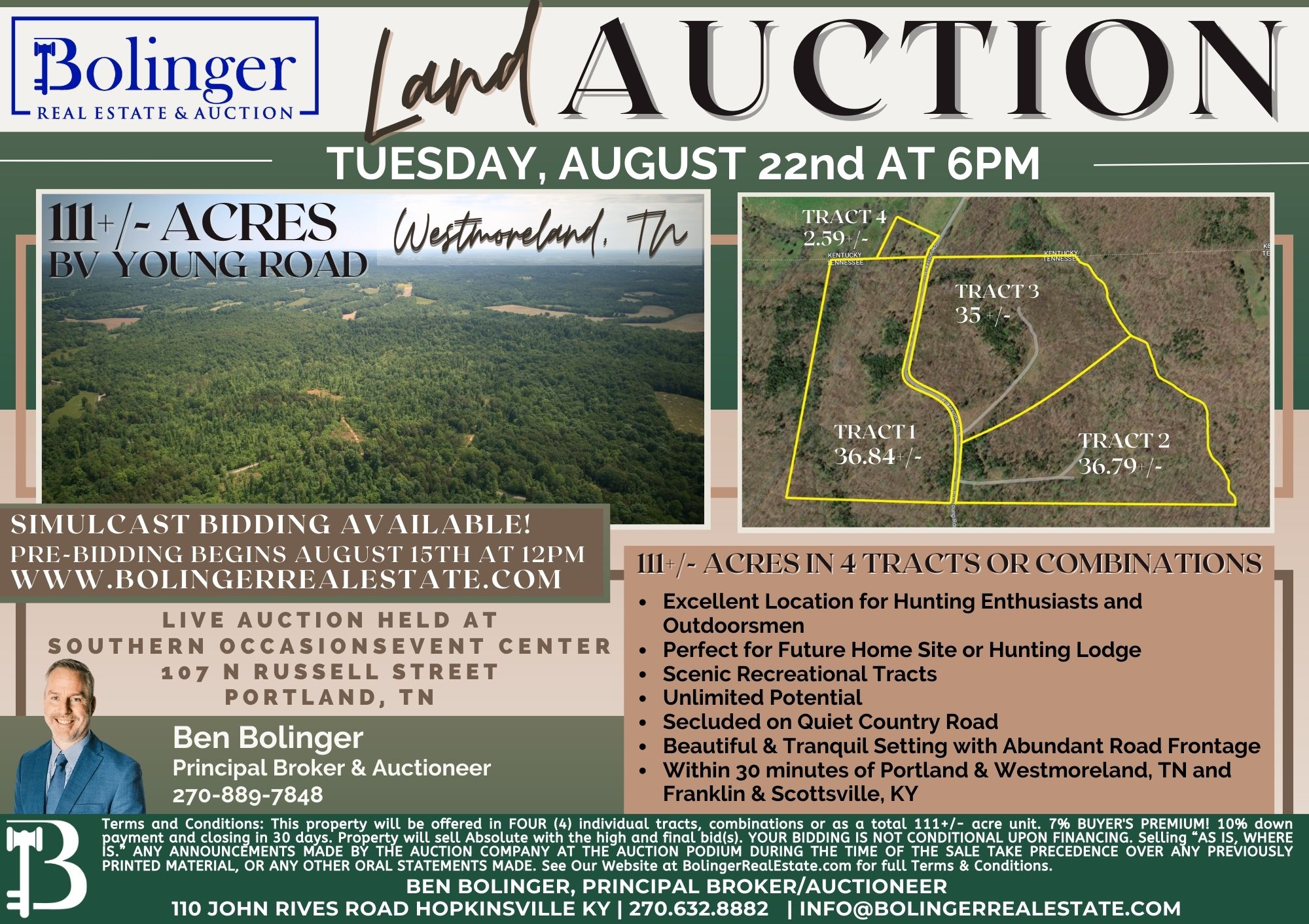 Research Parcel InformationFrom Portland,TN: Follow Hwy 52 W to TN-174 E (Fairfield Road), Turn Left onto W George Dunham Road, Turn Left onto Bosham Road, then Right onto BV Young Road. Signs Marked