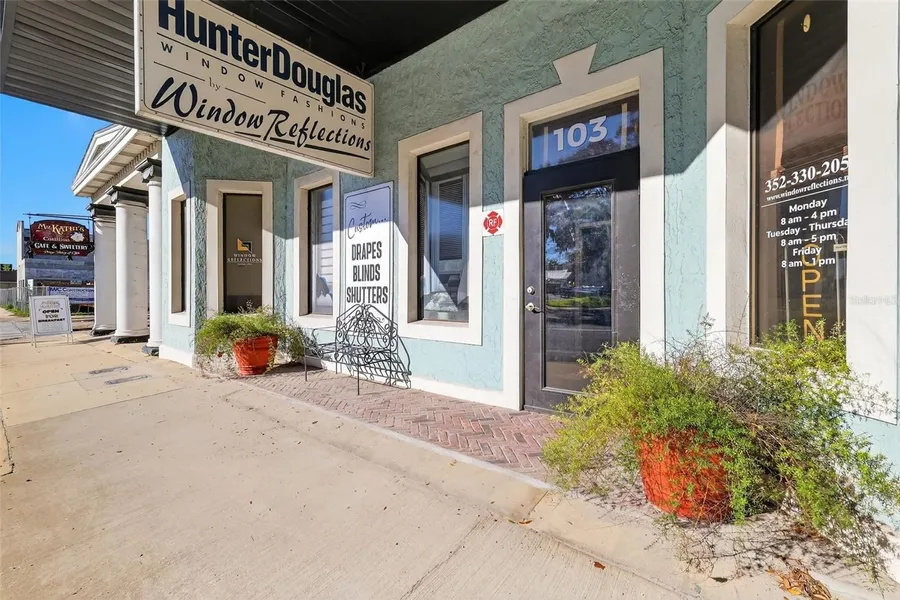 Prime Commercial Retail / Office Space of 4200 Sq feet. You will enjoy an open and versatile layout, with five office spaces, a spacious lobby/reception area, a kitchenette, 2 bathrooms, 2 of the office spaces can be utilized as a conference room, ADA compiant bathroom, a 1,200 square feet air-conditioned workroom in the back, and 700 square feet of air-conditioned workspace upstairs. Features include updated flooring, roof was updated in 2022. This property is very clean and crisp. This space is move-in ready. D. O. T average daily traffic count is 24,500.00. We are looking forward to the redevelopment plan of Wildwood's historic downtown area, and their development plans of " The Railyard ", which will bring a mixed-use for business and entertainment space, retail, salons, and boutiques with rooftop dining. "The Railyard" will be just a block away. In preparation for this expansion, the City of Wildwood has constructed a parking garage with 125 parking spaces to support the expanding downtown. In this prime location, you are centrally positioned near The Villages, the nation's largest and fastest-growing housing development, which drives significant growth and interest in this location. Also available is a very profitable business that is for sale. Potential buyers of the business will need to execute a confidential disclosure and provide proof of funds. Please do not disturb the business operation or its employees. Lets set you up for a private showing today for this extraordinary commercial property.