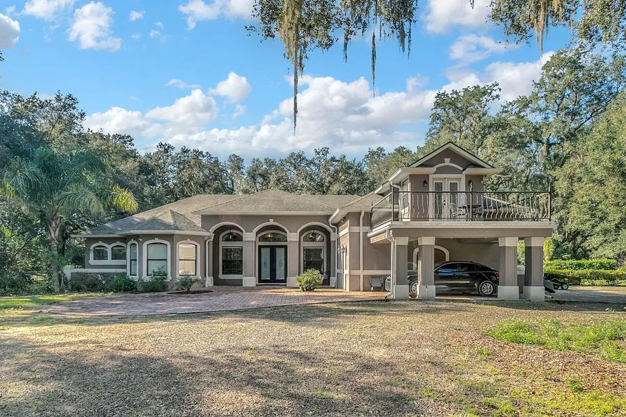 This is a rare find luxury equestrian estate on nearly 10 acres with beautiful home boasting over 3,100 square feet of living space. Situated among mature oak trees, this home is like living in a park surrounded by nature and natural beauty. Inside the foyer leads to the open living area with high end appointments including backlit trey ceilings with crown molding, stately columns, built-in niches, travertine flooring and views to the endless property. The gourmet kitchen includes granite countertops, gas range, huge walk-in pantry, eat-in bar with pendant lighting and adjacent breakfast nook. The den offers the perfect space for a home office or playroom. The master bedroom is like something from a top end resort with panoramic views of the property. The master bath features soaking tub, split vanity with granite countertops, travertine flooring and vessel sinks. Upstairs bedroom includes walk-out balcony. The fully screened lanai overlooks the backyard and offers ample space for entertaining. Additional outside patio area perfect for outdoor BBQ and childrens toys. Located in Webster between Tampa and Orlando. You wont find a property like this anywhere! Call now to schedule your showing!