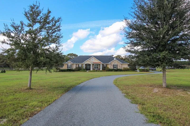 DRIVE THROUGH THE STONE COLUMNS AND DOWN THE TREE LINED DRIVEWAY INTO THE SPACIOUS 3 CAR GARAGE. THIS HOME CAPTURES YOUR EYE FROM THE MINUTE YOU WALK INTO THE COLUMN ENTRANCE WITH A FORMAL DINING ROOM, FRENCH DOORS LEADING INTO THE LARGE OFFICE. THE SPLIT BEDROOM PLAN HOLDS THE MASTER BEDROOM HAS LIGHTED TRAY CEILINGS, HIS/ HERS WALK IN CLOSETS, DUAL VANITIES, WALK IN SHOWER, GARDEN TUB, WITH ACCESS TO THE SCREENED IN PORCH PERFECT FOR ENTERTAINING WITH A SOLAR HEATED POOL W/ GUEST BATH. THE GOURMET CHEFS KITCHEN BOASTS SS APPLIANCES, LARGE ISLAND, GRANITE COUNTER TOPS AND OPEN FLOOR PLAN OF LIVING AND DINING AREA WITH FLOOR TO CEILING STONE FIREPLACE W/ ACCENT LIGHTING AND BUILT IN BOOKCASES. TWO MORE LARGE BEDROOMS, A LARGE GUEST BATH AND MEDIA ROOM WITH SLIDING GLASS DOORS ONTO THE PATIO. LARGE 4 STALL BARN WITH LOTS OF STORAGE, RV PARKING, ROUND PEN, WASH RACK, TACK ROOM, AND ARENA. ...