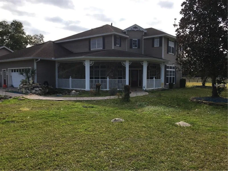 Beautiful estate on 5.3@ acres in rural area just outside of Bushnell. Large home with all amenities including a saltwater swimming pool/spa. Property has six stall horse barn with tack and wash rooms, efficiency apartment and pastures. In addition to attached two car garage and golf cart room, property has separate detached two car garage with large workshop. In addition, seperate car port can park RVs and boats. Property located among large estates with acreage. Large master bedroom with fireplace and french doors off the pool area. Large rear screened porch with attached cooking facilities for outdoor festivities. Many other features. Easy access to Orlando, Tampa, Ocala and West Palm Beach.