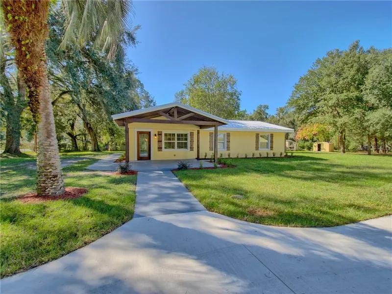 Classic turned Luxury. Sitting on 2 beautiful acres is an exquisite opportunity to own a freshly renovated block home. Upgrades are everywhere and will be appreciated by the perceptive buyer. Enter through a gorgeous front door and stand amazed at the soaring ceiling and hand-selected finishes. The kitchen has pantry, stainless appliances, HUGE island with extra storage, room for bar stools and covered with a stunning piece of granite. The colors compliment the design with supreme comfort. Formal dining room is just off the kitchen with access to the back patio. The elegant master suite incorporates crown molding, barn door, water closet, dual sinks and vanities, walk in shower, notable claw foot soaking tub and walk in closet. Further property highlights include NEW plumbing, NEW spray insulation in walls and ceilings, NEW well pump and tank, NEW electrical panel and wiring, NEW metal roof on home and garage, NEW paint, NEW flooring, NEW windows and so much more. The impressive front porch is a show stopper and is the perfect introductory to this opulent home. Metal storage building is approximately 24x49. The expansive garage is approximately 69x33 and includes NEW panel, fresh poured concrete in back, NEW lighting, NEW 8 ft roll up door, safe room AND half bath! The grounds have fresh landscaping and beautiful shade trees throughout. Convenient location offers ease of travels to I-75 and Florida's turnpike for anyone traveling to Tampa, Orlando or anywhere in between.