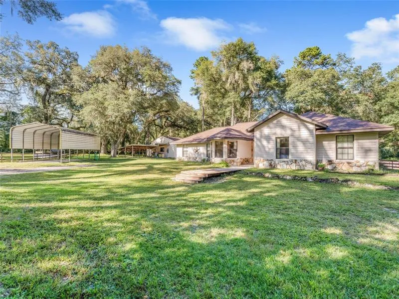 Nestled at the end of the paved road, your dreams of country life are laid out before you. Whether you want that perfect little self-sustaining farm with gardens, fresh eggs from your chickens and stables for your horses, or just to get away from it all and store your RV, boat, and ride your ATV's - the only limit to the possibilities of this 8+ acre gem will be in deciding what to do first! This 3 bedroom, 2 bathroom home has already had some recent upgrades with luxury wood-look?? ceramic tile, granite countertops in the kitchen, and custom interior barn door features. There is a 48'x 20' screened back porch overlooking one of the multiple pastures where you can relax in your 6 seater Hot Springs above-ground spa, or head out to the above ground pool, or even your fish-stocked custom water feature! From the moment you enter the electric-operated front gate of the property, you'll see the (approx 1 acre) of fenced pasture area to your left. The chicken coop and two stall barn, climate controlled tack/feed room, and animal pens all surround a detached 23'x38?? workshop which has 110V & 220V power and TWO, 10' OVERHEAD DOORS. That's in addition to the attached two car garage and 31'x18' RV carport! The rest of this property stretches as far as the eye can see to the right of the driveway upon entry. BRAND NEW ROOFS (September 2021) with 50 year shingles on the main house, workshop, and tack room! New Well pump (90 ft. well and iron water filter) and Bladder tank replaced 2019 & New Whirlpool water softener in 2020. WHOLE HOUSE GENERAC 15,000 watt standby generator, ADT Security alarm installed, as well as a full 1-year Old Republic home warranty are being provided by the seller for your peace of mind. You will enjoy the privacy of the woods on three sides of the home. This home is located not far from Withlacoochee Trail & Forest. NO HOA and multiple additional carports so bring ALL of your animals & toys, and make this one YOURS!