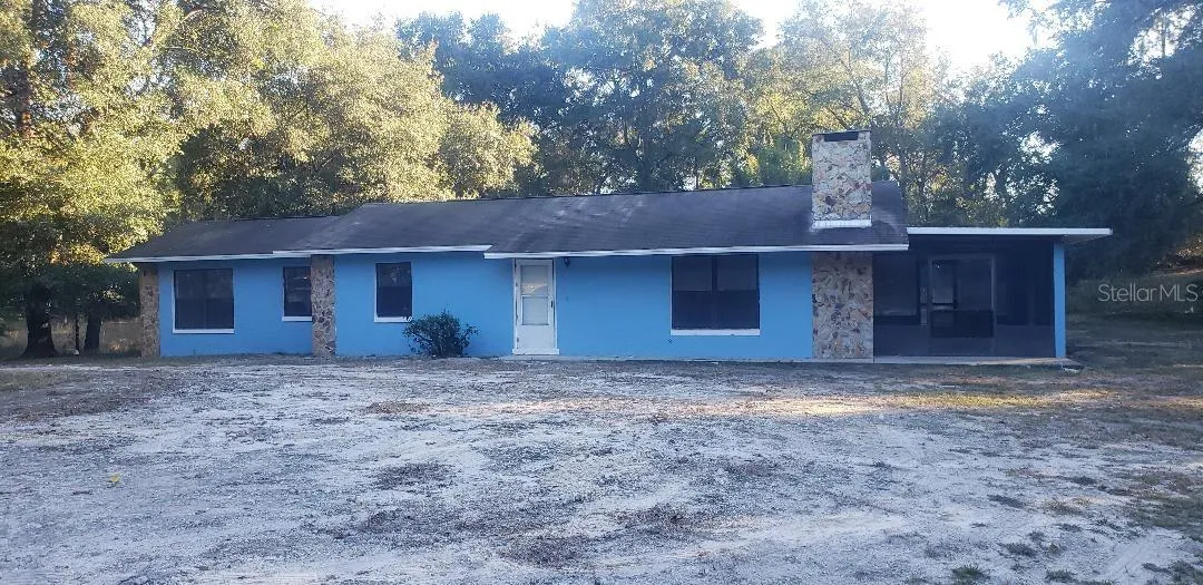 COUNTRY HOME---4.8 +/- acres located in Sumterville area on a paved county road...Block home with large great room with fireplace, open kitchen with eat-in area. 3 bedrooms, 2 baths and inside laundry room, new laminate floors and paint throughout. Large enclosed metal workshop building with concrete floor, electric and 3 large roll up doors plus a covered open storage area is attached. Land is mostly wooded with open space around home, driveway and workshop. Call for more details and to schedule a viewing.