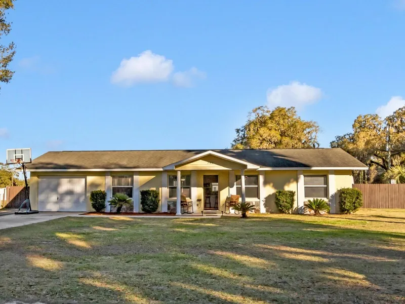 Welcome home to this charming 3 bedroom 2 full bath home with NO HOA. This spacious open floor plan features clean finishes, and NO Carpets - new laminate flooring in the living room and bedrooms! The kitchen is open to the living room which has plenty of space for a large dining table. The primary suite is to the left, upon entering, while the 2 additional bedrooms share a guest bath with a tub shower combo, to the right. The home has a great layout to entertain but it doesn't end there! Check out this amazing yard! Sitting to the back of over a half-acre lot is a separate workshop with electrical. With an in-ground pool, water slide, and plenty of seating areas, you are ready for the weekend party!