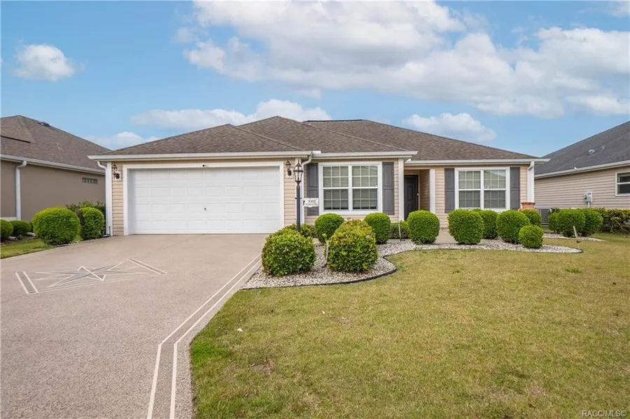 Welcome home! This Village of Collier Wisteria model will whisk you away! This location is a hot commodity at just 1.5 miles away from the popular Brownwood Paddock Square. Some of the recent updates include a custom epoxy coated driveway, tastefully landscaped yard leading right to your custom entryway through to your warm and welcoming home. Head left and your kitchen is equipped with matching whirlpool appliances, all wood cabinetry, updated light fixtures, and an eat in area overlooking the front yard. Quick access through to the spacious two car attached garage with pull down attic access. To your right of the main living area is the guest wing featuring two spacious guest suites and the guest bath area with a tub and shower combo and custom tile surround. Cross over to the Master Wing of the house showing off vaulted ceilings, spacious walk in closet and built in shelving. Master bath boasting dual sinks, recessed ceiling lighting, fully tiled shower with matching stainless grab rails, corner bench, and custom mosaic band and shower base. The master corridor is backing up to the indoor laundry with a laundry tub, and plenty of additional storage space. The main living area has vaulted ceilings throughout, recessed lighting, and lots of updated fixtures. Pass through the triple wide sliding glass doors to the screened in lanai over looking the back yard. This area boast mature hedges allowing you to enjoy privacy. Don't forget to slip out the side on the fully paved patio - set up for grilling and entertaining. This home is perfectly located in proximity to shopping, fine dining, world famous golf courses, highly accredited medical practices, and top of the line fitness facilities as well as The Brownwood Paddock Square, Evan's Prairies Championship Golf Course and Country Club, The Eisenhower Regional Recreational Center, Sweetgum and Mangrove Golf Courses. Pull up, you wont want to leave without a contract. Your search for a deal in The Villages stops here!