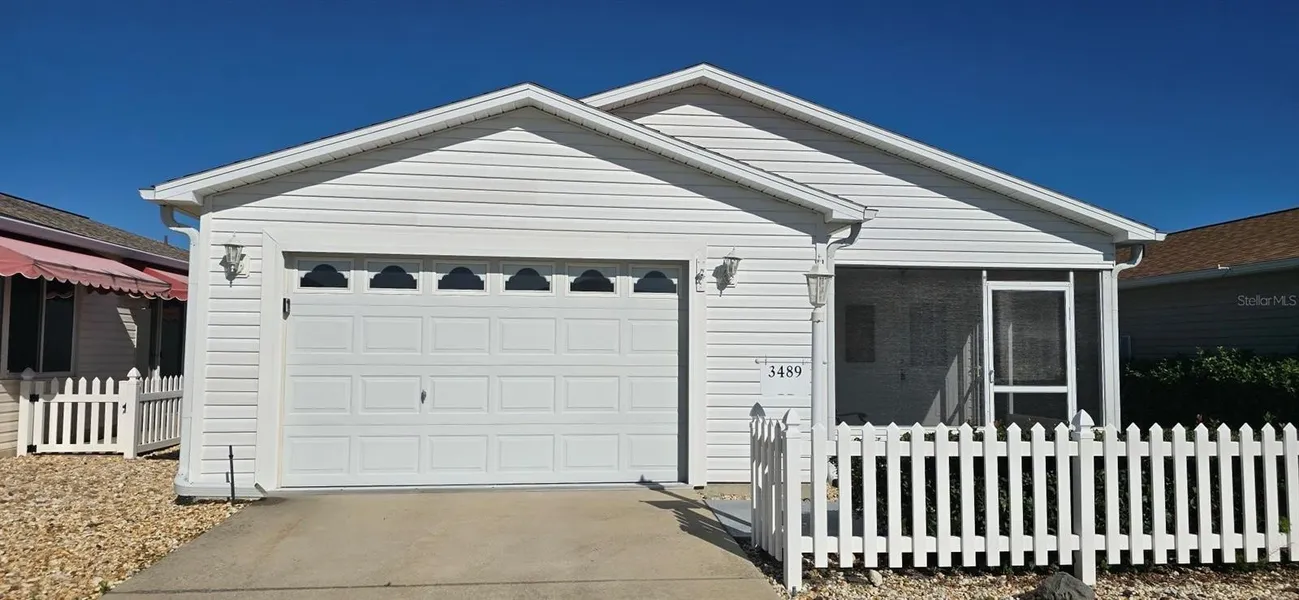 Fully furnished, long term rental in The Villages. 2 bed, 2 bath home with oversized one-car garage. Newly installed carpet in living area and bedrooms. Screened patio in front of home with additional patio area on the side of the home. Inside laundry area. Lawn care and pest control included.