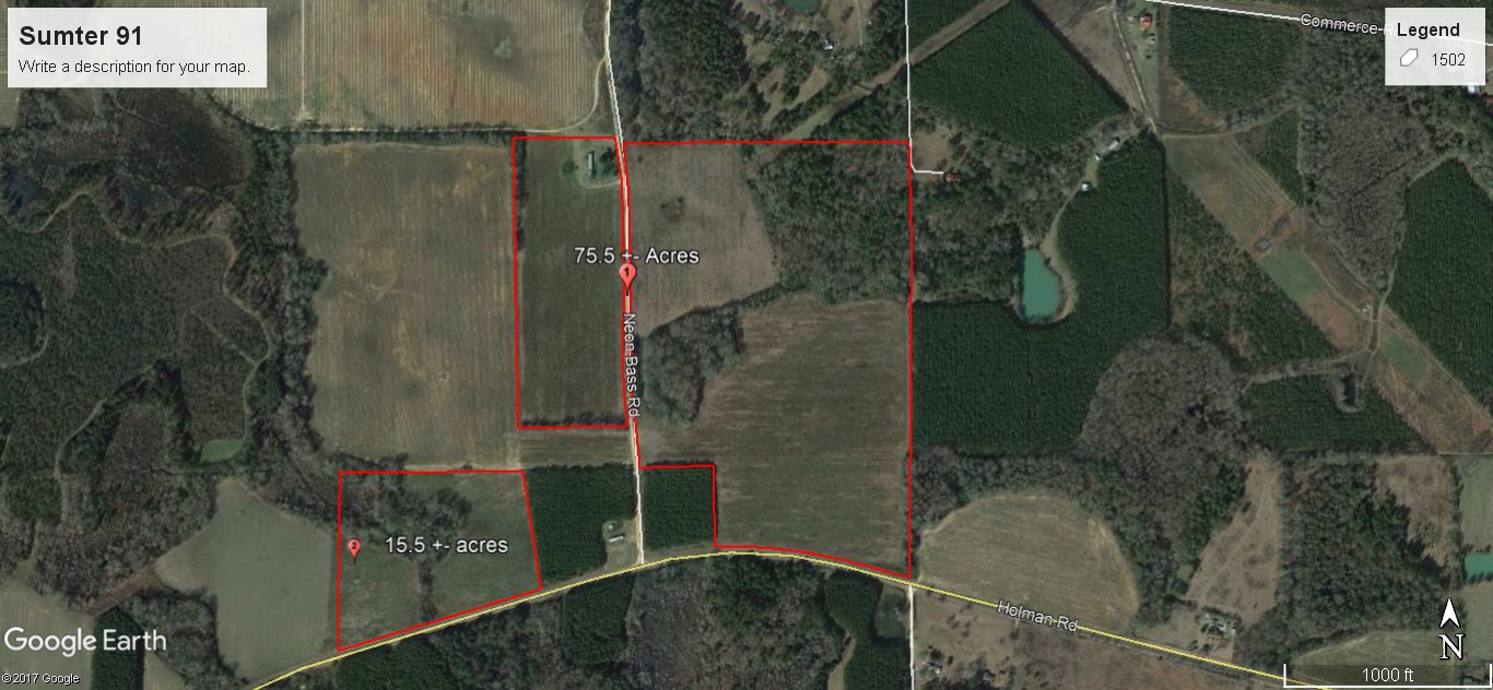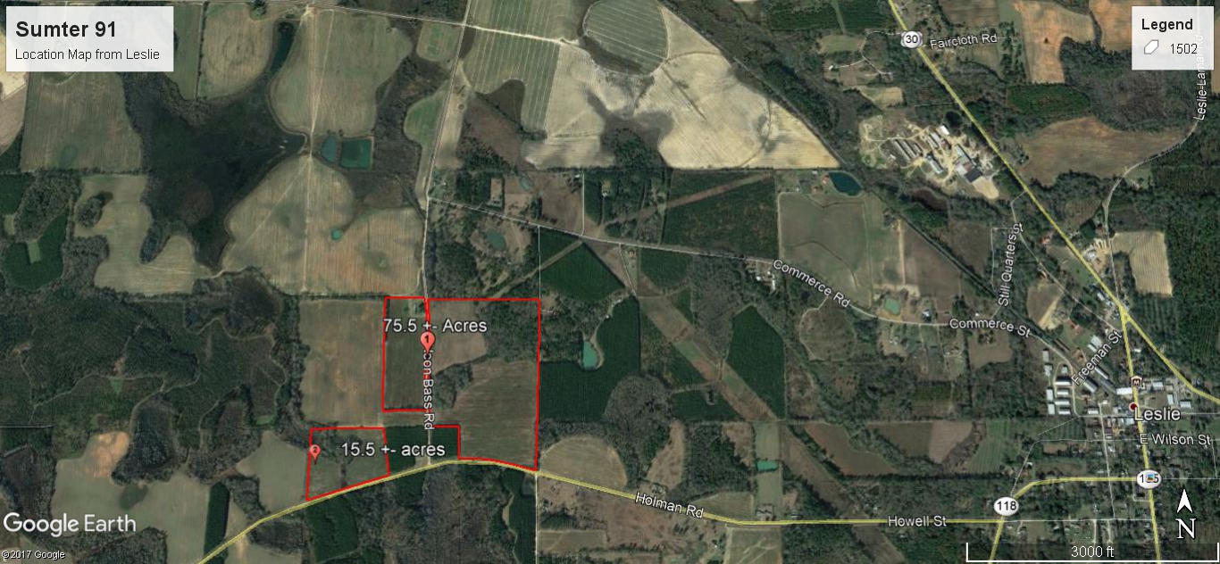 This beautiful farmland, consisting of 75.5 & 15.5 acres is conveniently located to Americus and Leslie with frontage on Holman Road and Neon Bass Road. The property consists of the high quality farmland that South Sumter County is known for as well as approximately 22 acres of wooded acreage. The tract is in a great location in an area known to have huge trophy deer. The property is located approximately 25 minutes from Cordele and I-75.