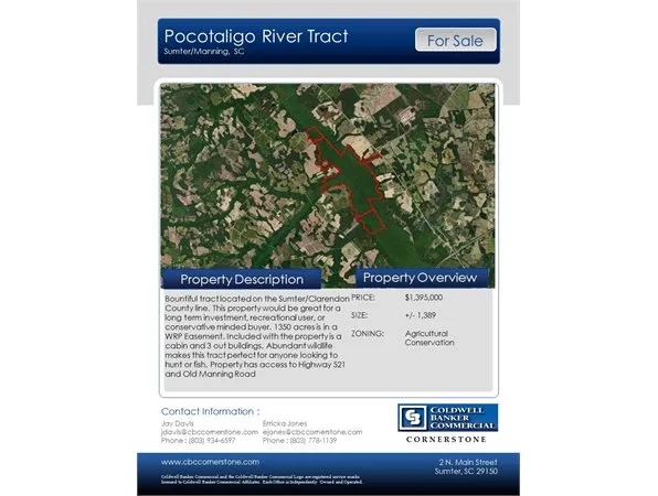 Bountiful tract located on the Sumter/Clarendon County line. This property would be great for a long term investment, recreational user, or conservative minded buyer. 1350 acres is in a WRP Easement. Included with the property is a cabin and 3 out buildings. Abundant wildlife makes this tract perfect for anyone looking to hunt or fish. Property has access to Highway 521 and Old Manning Road.