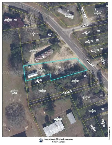 The lot is is approx. +/- 0.29 acre and measures approx. 60' x 141' x 25' x 98' x 59' x 203' and s located within the city limits of the City of Sumter in Sumter County. (Please see attached aerial photo).