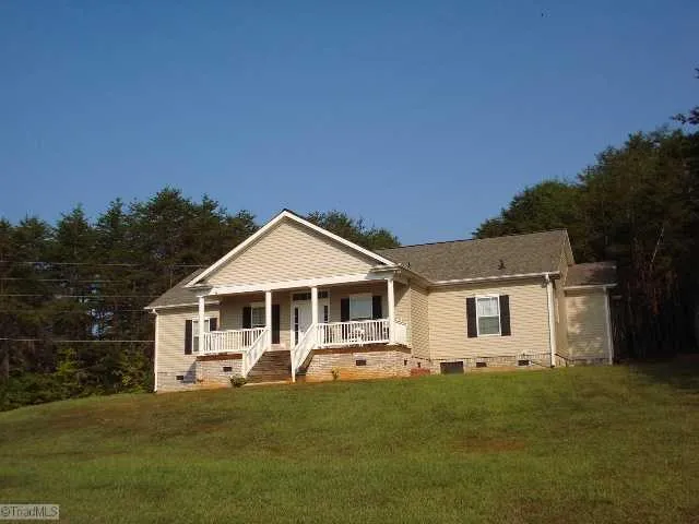 Wonderful one-level home. Open floor plan wiht columns at entry. Living area offers stunning rock faced fireplace. Kitchen has island with breakfast bar seating for 4, pantry & closet for lots of storage. Master bdrm & bath are huge - jetted tub, double sinks, walk-in closet, oversized shower & more. This home borders Pilot Mt. State Park so you have access to horse trails, walking trails and privacy galore!