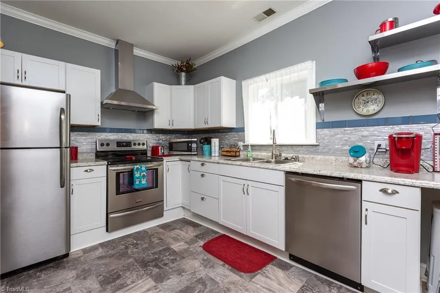 Absolutely precious two bedroom one bath home in downtown area. Has been an Air B&B and fixed up super cute. Appliances stay. Charming and ready for a new permanent owner. Vinyl windows, and new roof done in '08. House has been remodeled and inside looks new. Well done and beautiful kitchen, stone framework around fireplace.