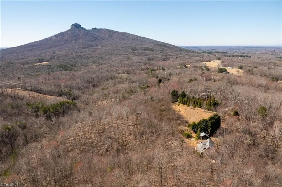 Easements have been located by surveyor! So much potential, Beautiful location with a view of Pilot Mtn. Large Structure (shell) in place and storage building. Small creek on lower SW corner. This 13.8 acres is a unique opportunity. The structure was started around 2010 and was not completed, its basically just a shell with No plumbing or electrical, no well or septic. No permits were pulled then, check with Surry Co says as they will do their best to work with a new owner to get things permitted for completion of building or new construction. Beautiful mature landscaping includes multiple cypress, birch, crepe myrtles and others. Finish the structure as a home or build a home in the open field and use the structure as something else. Property entrance is gated, small private road. All showings must be scheduled, Please respect neighbors on the private drive, Do not trespass or attempt ...