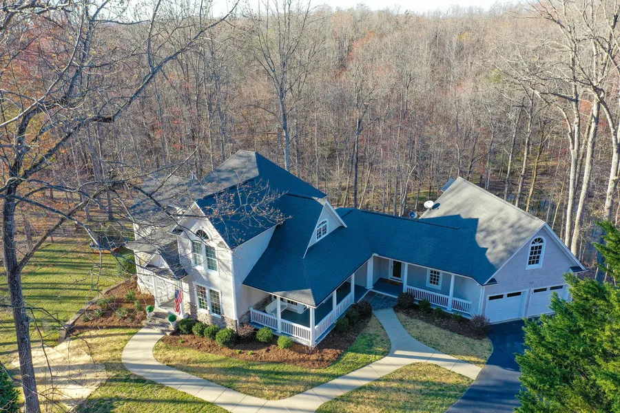 With three inviting porches that wrap around, this 4-bedroom, 3-bath home is designed with timeless craftsmanship and modern comfort. Large floor-to-ceiling windows flood the interior with natural light, showcasing views of the backyard pond from the kitchen and breakfast nook, as well as Pilot Mountain from the front.
