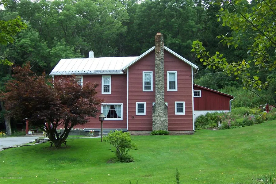 Rush Township Circa 1800's Farmhouse on 21.56 Acres. Beautifully restored 3 to 4 bedroom home with an attached 2 car garage. Hidden setting, quiet road, babbling brook, lily pond, woodshed, potting shed, storage building. Beautiful perennial gardens. One of a kind country home.All oil& gas Rights transfer to Buyer