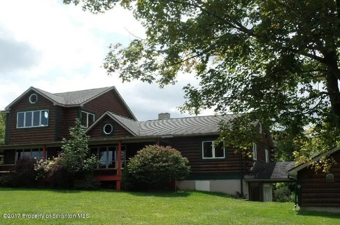 Log home on 10 acres with MBR suite on second floor. Suite includes fireplace, cedar closet, laundry area and full bathroom. Main floor has kitchen, DR, LR, and very large FR with French doors leading to the wrap around deck. LL has another FR with bar area and 1/2 bath. There is a 3 car detached garage. Nice deck on the back. Great views.