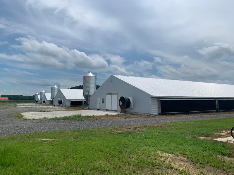 Four 60 x 500 chicken houses, built in 2018! Great location, right beside the Maryland/Delaware state line. 2019 Single-Wide mobile home included. 120,000 Square Feet. Capacity varies based on the size of the chickens that you are growing and the time of year. Growing for Mountaire! Active farm contract!