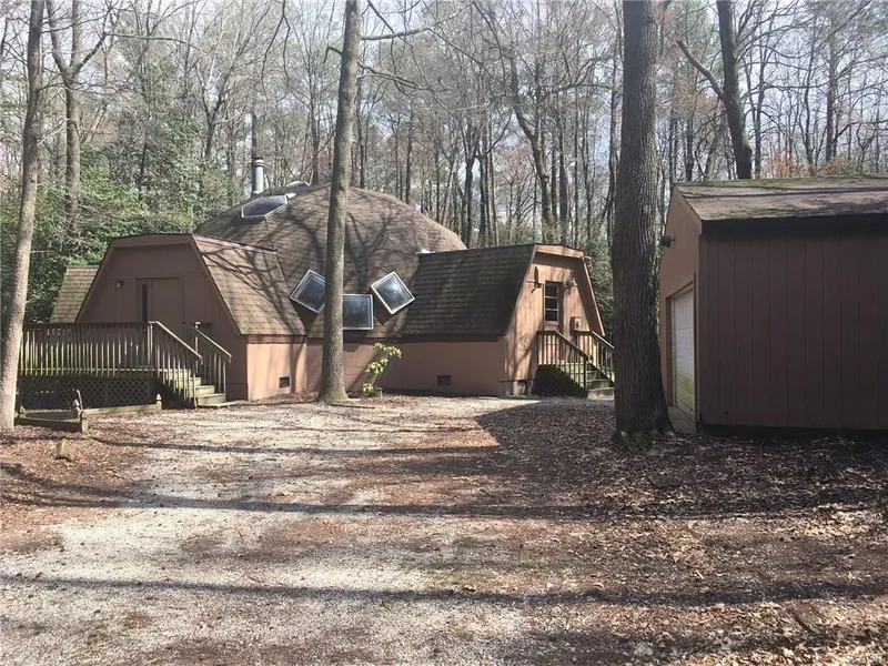 Two Story dome home with unique architectural build. Home has top floor Master suite with office space, walk in closet and three piece bathroom. Open floor plan with Galley style kitchen that opens to a dining area. This home has a detached two car garage with build in storage and available storage in its overhead space. Enjoy the screened in deck and fenced in yard. Also has new carpet and paint throughout. Home includes a water treatment system. New septic installed in July 2017. Home is being sold AS IS