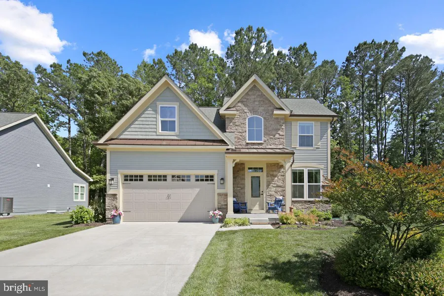 Attractive 3 Bedroom, 2.5 Bath with delightful paver patio backing to woods shows like a model in sought-after amenity-filled Forest Landing! LVP Flooring on entire first floor from Entry Hall to Dining Room that opens into Kitchen. The Kitchen is equipped with Soft-Close cabinets, granite counter-tops, stainless appliances including gas range, pantry and Island Counter Seating. Vaulted Ceiling in Living Room with Impressive floor to ceiling Stone Gas Fireplace. Includes an Upgraded Morning Room to enhance living space or guest seating when entertaining. The Morning Room has beautiful windows and access to Patio with knee-wall. Yard is private, backing to woods with a glimpse of a pond two lots away. Quiet and Gracious Setting. Back inside the Spacious Owner's Suite is tucked to rear of home, with Walk-In Closet, additional Windows installed at build as Upgrade. Private Bath with tiled shower, and a double vanity. Upstairs there are 2 guest bedrooms, a shared hall-way bath and a Loft currently being used as an office. Covered Front Porch, Two Car Garage with hanging storage system recently installed. Beautifully landscaped Property in attractive Forest Landing with Stunning Club House with Caterer's Kitchen, Work-out Room, Lap Pool, Zero Entry Pool, Splash Zone & Tot Lot. Tennis & Pickle Ball also available! Active Community is a close drive or reasonable bike ride to Bethany Beach - all off of main roads/avoiding Rt 26. Home is offered Furnished with minor exclusions. Original Owners, Never Rented. Available for your enjoyment this Summer!