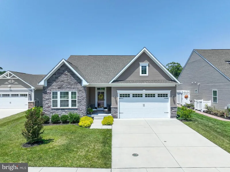 The perfect combination of peaceful living and convenient location has arrived on the market! Built in 2020 and used only in summers, this 3-bedroom, 3-bathroom home with a flex room is meant for enjoying and is also located close to the community pool and clubhouse and only 3 miles from Bethany Beach. The front porch has a gorgeous view of a large pond and wooded area full of wildlife. As you enter the home, notice the wide hallways and beautiful luxury vinyl floors that are known to withstand water and sand. In the entryway, there is a bedroom and full bath to the left. As you walk down the hallway the den/ office is to your left, with beautiful French doors that have pull down shades should you need to use this as an additional sleeping space for guests. Past the den, the house opens into the family room, eating area and open concept kitchen with quartz countertops, upgraded cabinets ...